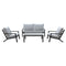 Modular with ‘tree-free’ adjustable dining table with two benches to comfortably seat eight.